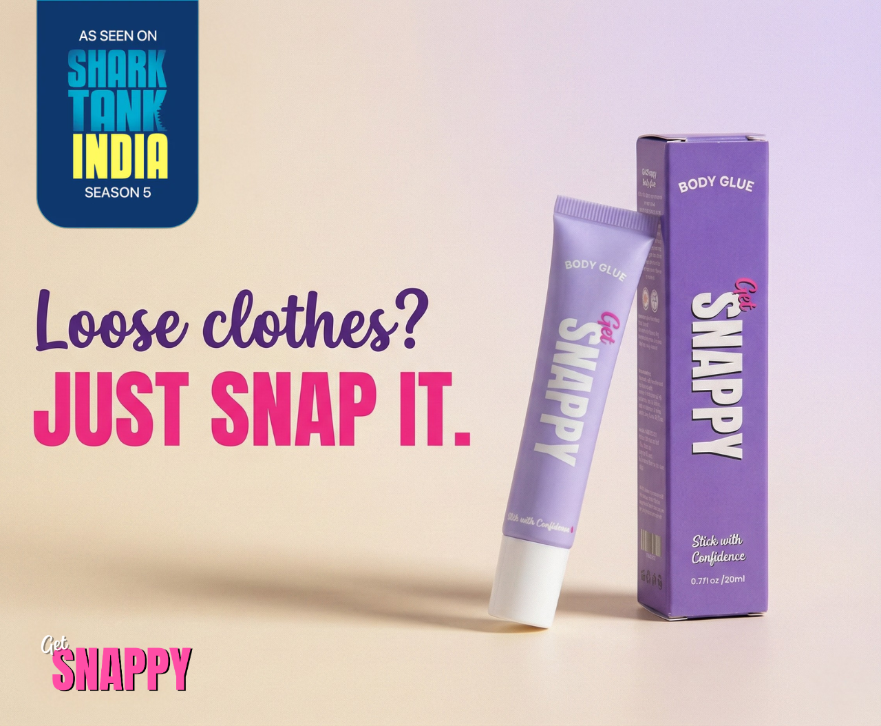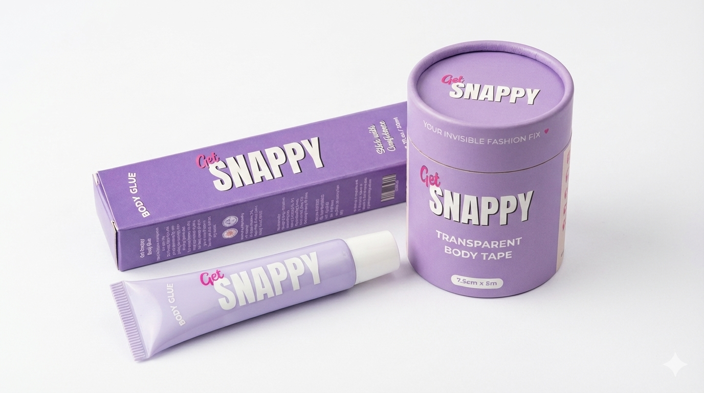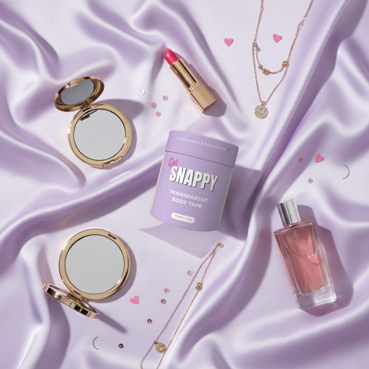 SNAPPY Body Glue is a water-soluble clothing adhesive that applies directly to your skin then washes right out when you're done.